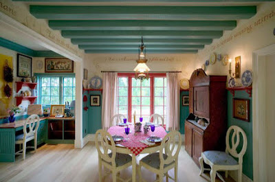 I love the turquoise beams in the dining room. Hmm, that's something I never thought I would utter. This house has magical powers, I tell you.